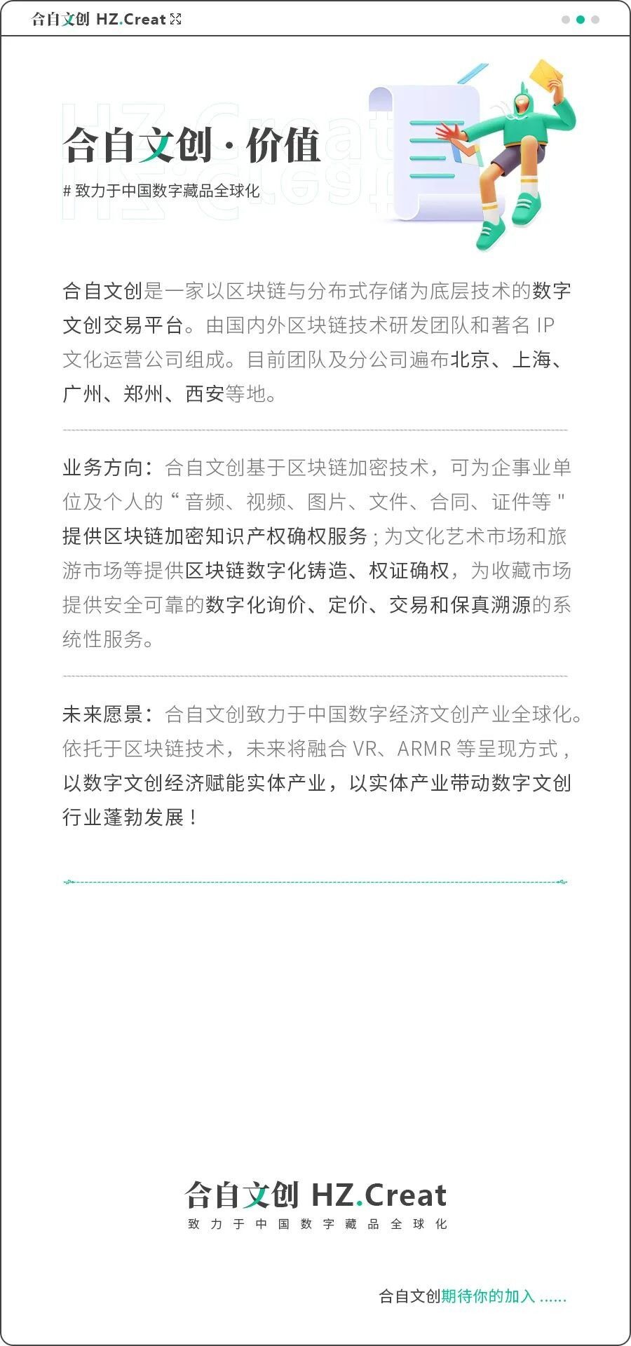 合自文创作为数字艺术品收藏领域的建设者,我们致力于将中国数字艺术藏品推向全球,同时打造数字艺术藏品权益与实体商业发展的良性生态闭环。