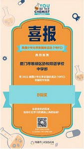 5月份,我校初中部8位同学参加了由美国化学教育基金会(Chemical Education Foundation, CEF)组织的美国少年化学家挑战赛(YBTC)中国区决赛,在决赛中我校8位同学组成的两个团队,经过5轮激烈的角逐,在众多参赛队伍中脱颖而出,两个团队排名均列中国赛区的前35%,共斩获8枚铜奖。恭喜所有获奖的孩子们!