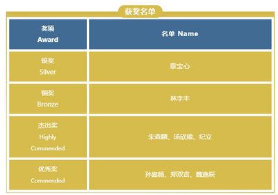 5月份,我校初中部15位同学们参加了由英国生物学奥林匹克委员会(UKBC)组织,并由英国皇家生物学会(RSB)管理的生物学思维挑战。本赛事旨在激发学生对自然界的好奇心,通过思维挑战鼓励他们在校外培养对生物学的兴趣。在此次比赛过程中我校学生取得了优异的成绩,1名同学荣获银奖,1名同学获得铜奖,3名同学获得杰出奖,3名同学获得优秀奖,恭喜所有参赛的孩子们!