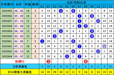 后区遗漏分析:上期后区号码分别遗漏:12期、1期,最近5期后区开出3个冷号,温号出现3个,热号出现4个。目前冷号2个:02、12;温号4个:03、04、08、09;热号有6个:01、05、06、07、10、11。本期预计后区冷温码现身,主推两码02、08。