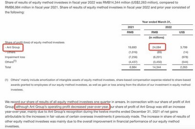 阿里巴巴今日发布2022财年(2021年4月-2022年3月)及四季度(2022年1-3月)报告,透露出了蚂蚁集团2021年经营利润的下降。