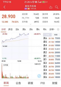 东方甄选粉丝突破1000万 新东方在线股价5天涨超550% 俞敏洪 今天赞誉我们的人 不少是当初批评我们的人