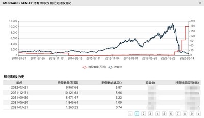 Wind数据显示,摩根士丹利目前是持有新东方最多的机构投资者。此前,摩根士丹利持有新东方股数很少,2020年底为170.4万股,2021年一季度末增至1260.29万股,2021年二季度末再增至1846.61万股,2021年三季度又一次增持至5471.47万股,2021年末持股数达1.01亿股,今年一季度,摩根士丹利减持了部分新东方仓位。