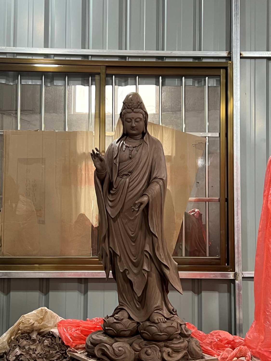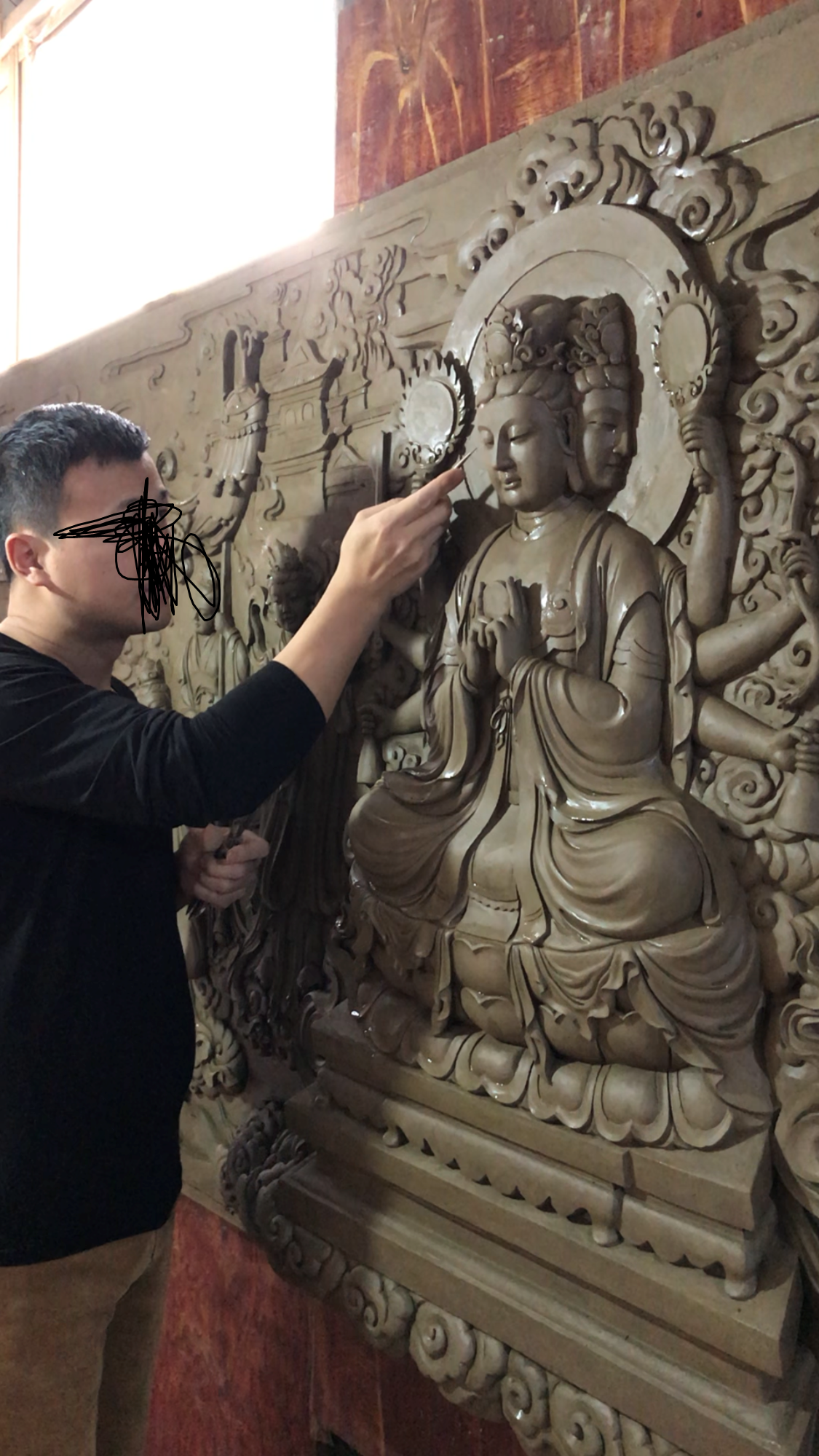 近年来,国内和国际市场上宗教造像兴起,脱胎、铸铜、木雕、石雕、瓷雕等艺术种类纷纷上场,争夺蛋糕。艺术家们深知,不同造像工艺,材料不同,方法不同,结果不同,但是都应经过泥塑创作这一工序。眼尖的金长融会贯通,把做木雕的减法技术转变为泥塑加减并用的技艺上,使泥塑这一木雕的工序,也成为一种单独的艺术。