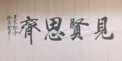 徐志贤出身国学、书法世家,自幼酷爱诗词歌赋,饱读经史,初中开始填词谱律,作品常常见诸报端;工作后携诗伴词度惊文,心闲手转,步其韵落纸挥毫,妙生绳尺之间,迹述心涛,和寂清怀,白日风云叱咤付之飞墨,畅快淋漓,方圆之中放马云山,天地之间点星化雨。集虚布道,澹泊宁静,翩跹之余,心中体会生命中徐疾掠涩的阴阳之合,就如他主张的书法作品完成之后审美的关键点不在墨上而在留白之上。