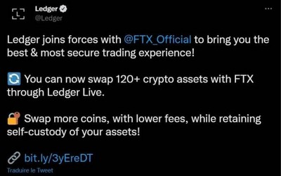 Ledger 宣布与 FTX 建立合作伙伴关系 – 来源:Twitter