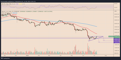 上涨三角形的看跌情景着眼于 16,000 美元至 20,000 美元的范围,具体取决于击穿点。