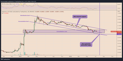 相反,跌破中通道支撑位可能会使 DOGE 的价格测试 0.04 美元作为其下行目标,比今天的价格下跌 32%。 该水平与自 2021 年 4 月以来一直为狗狗币价格提供支撑的另一条下跌趋势线(上涨水平)相吻合。