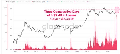 - 2022 年 6 月初,已实现亏损大幅上涨至超过 70 亿美元的创纪录水平。(Glassnode)