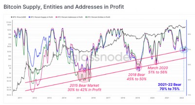 截至 2022 年 6 月,该指标的值约为 49%。历史熊市底部已在利润供应的 40% 至 45% 之间触底。