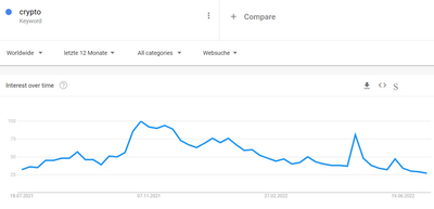 正确解释Google 趋势提供的数据至关重要,尤其是在金融和加密货币领域。例如,当关键字“比特币”的搜索量减少时,这意味着搜索比特币的人越来越少,这意味着对比特币的兴趣正在放缓。这里有一些有趣的例子