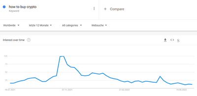 鉴于“ Crypto ”的搜索热度已达到 1 年以来的最低点,“ How To Buy Crypto ”这句话也是如此。有趣的是,在比特币的历史最高点,K线走势图显示了对关键字“如何购买加密货币”的最高兴趣。这意味着大多数人一直以11 月的历史最高价购买,而现在以折扣价购买的人较少。