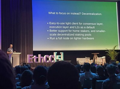 7 月21 日,以太坊共同创办人Vitalik Buterin 带着他的新提包来到了时尚之都巴黎,出席以太坊社群会议(ETHCC),并针对以太坊合并进度以及以太坊未来路线图发表演讲。