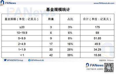 PANews将所有推出基金的机构按照机构类型和资金用途大致可以分为6个类别:传统风投机构、加密原生风投、生态基金、传统机构、加密机构以及加密圈最为活跃的交易所。其中加密风投、生态基金、传统风投类的基金数量和募资总规模均分列前三,三者在基金数量上十分接近,并未拉开太大差距,而在募集的资金规模方面则较为悬殊:传统风投机构共推出总规模达222亿美元的基金,占总体的56%,而加密风投与生态基金的相关数据分别为75亿美元、19%和48亿美元、12%。