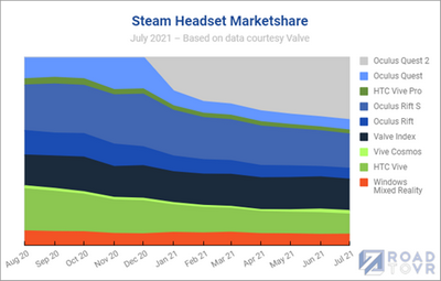 SteamVR平台上的硬件百分比(从2020年8月至2021年7月之间)