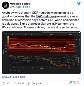 与此同时,交易员和分析师 Gareth Soloway 则认为,风险资产投资者将面临更艰难的时期,因为美联储加息不可避免地会导致更严重的衰退。他的观点得到了链上分析师 Material Indicators 的赞同,该分析师同样警告说“在宏观层面上,最坏的情况还没有到来”。