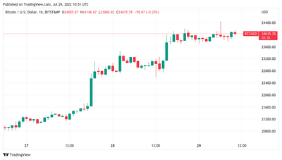由于新的通胀数据引发了对欧元的担忧,比特币(BTC)试图在 7 月 29 日华尔街开盘前锁定 24,000 美元作为支撑。