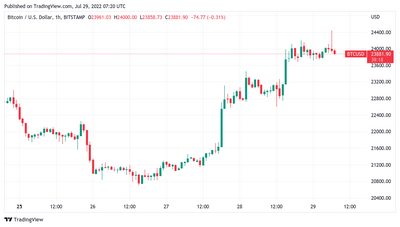 在盘整约 23,000 美元后,由于美国联邦储备委员会 (Fed) 最新的上涨和 GDP 数据证实美国现在处于衰退之中,多头再次推动市场走高。