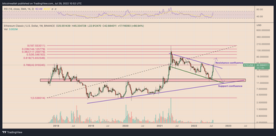 在周线图上,ETC 的价格已经达到阻力汇合点,随着围绕 Merge 的兴奋增加,等待突破。