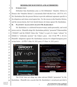 Kim Kardashian 法律团队提出动议驳回 EthereumMax 加密货币诉讼