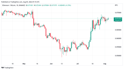ETH/BTC 1 天蜡烛图(币安)。 资料来源:TradingView