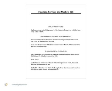 英国政府今天发布了长达 330 页的金融服务和市场法案。