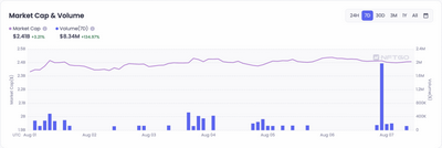 根据 NFTGo 的数据,本月到目前为止,该系列的总销售额为 834 万美元。在此期间,这一数字上涨了 135%。在过去 7 天上涨 3.21% 之后,该系列的市值达到 24.1 亿美元。