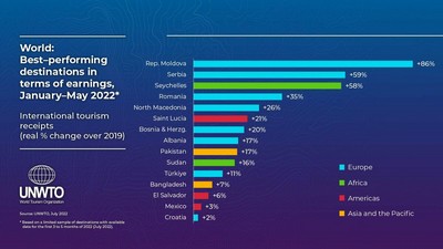 世界上恢复(并超过)新冠疫情前旅游收入的前 15 个国家 – 来源:unwto.org