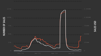 虚拟地产以加密货币作为主要交易媒介,以NFT作为主要载体。而随着各个平台代币价格的下跌,虚拟地产的价值也一落千丈。此前大批炒作者大量涌入,又齐齐退出市场,直接引发了虚拟地产泡沫的破灭。从虚拟地产的销售数量和价格上看,除了5月份,2022年以来该市场呈现一路走低的趋势,并与加密货币市场和NFT市场呈现较大的相关性。