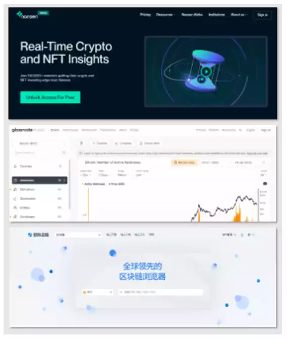 图片:常见的链上数据服务商的平台工具页面
