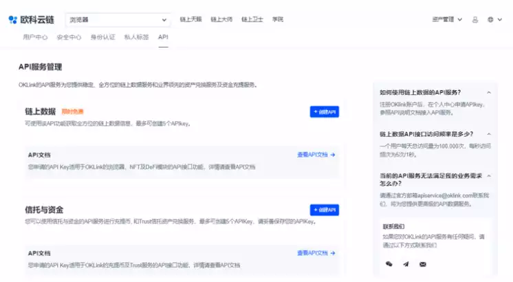 图片:OKLink Open API 服务页面