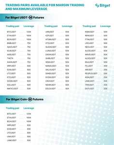 对于你当中更有经验的人,Bitget 当然提供了对你的头寸应用杠杆的可能性。 我们必须在这里发出严重警告。 虽然当市场遵循你的预测时乘数可以创造奇迹,但当价格反转时它也可能造成严重破坏。 因此,你必须在知情的情况下使用它们,并且以你可以承受的损失金额使用它们。