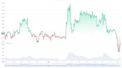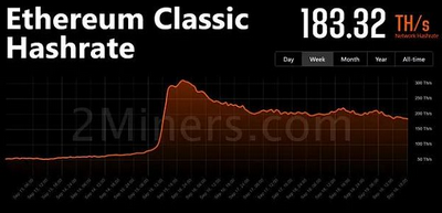 以太坊经典哈希率K线走势图。资料来源:2miners