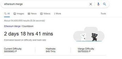 谷歌的合并倒计时时钟。资料来源:加密货币