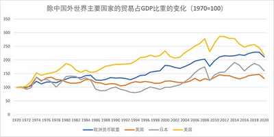 图2-7 世界主要经济体的贸易依存度(1970=100)