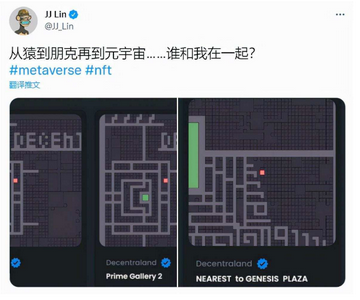 2021年11月,歌手林俊杰花12.3万美元在Decentraland购买的3块虚拟地产,这个平台建立在虚拟世界上,为用户提供NFT 形式的土地、虚拟形象穿搭等等,用户也可以将自己设计的3D场景、服装等等嵌入到游戏中并进行交易。