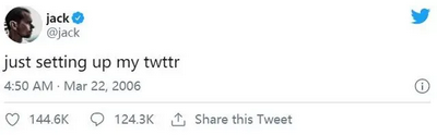 2021年3月6日,推特联合创始人兼 CEO 杰克 · 多西(Jack Dorsey)于 2006 年发出了他的第一条推文,推文内容为 “just setting up my twttr”。杰克 · 多西为该推文创建了 NFT 不可替代令牌。