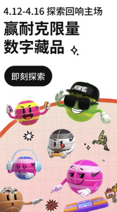 2022年4 月 16 日,耐克中国天猫旗舰店已上线数字藏品活动,将篮球运动与音乐、潮流、艺术、街舞、电玩相结合,并融入涂鸦风格,打造了“回响全明星系列”数字藏品,并在国内限量首发。