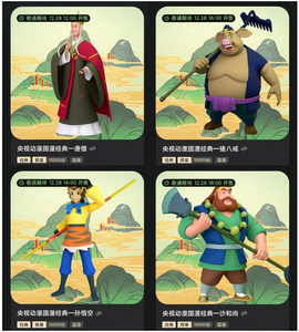 四款数字藏品形象是西游记里取经的四人,唐僧、孙悟空、猪八戒和沙和尚。公开发行数量10000份/款。创作者是央视动漫集团有限公司,发行方也是央视动漫集团有限公司。