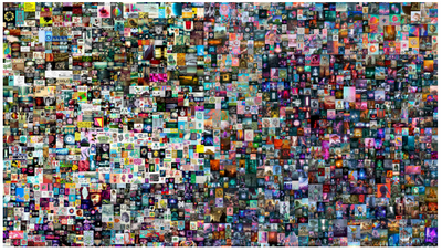 《Everydays: The First 5000 Days》成交价6930万美元(约4.5亿人民币)。它是艺术家迈克·温科尔曼(艺名Beeple)作品的马赛克集合,是一幅巨型拼贴作品。从2007年5月起,他每天在网上创作和发布一件新的艺术作品,最终把5000张作品图拼接成一个316MB的JPG文件。