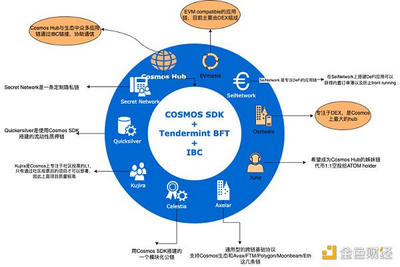 其他值得关注的特色app chain包括流动性质押应用链Quicksilver;桥接多链资产的Kujira,其上的Dapp包括Blue和FIN并且专注高质量项目投票通过才能进行部署;通用的跨链基础协议Axelar旨在解锁跨链可组合性和流动性,但其收取的中继费用较Kujira更高;希望成为Cosmos姊妹链并拿出47%代币对ATOM holder进行1:1空投的JUNO,专注DeFi内置订单簿及防止front running的app chain Sei Network等。