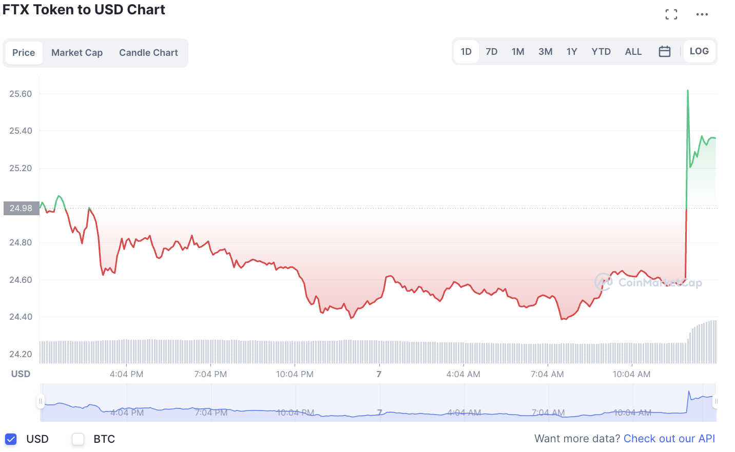 FTX 过去 24 小时的价格。 资料来源:CoinMarketCap