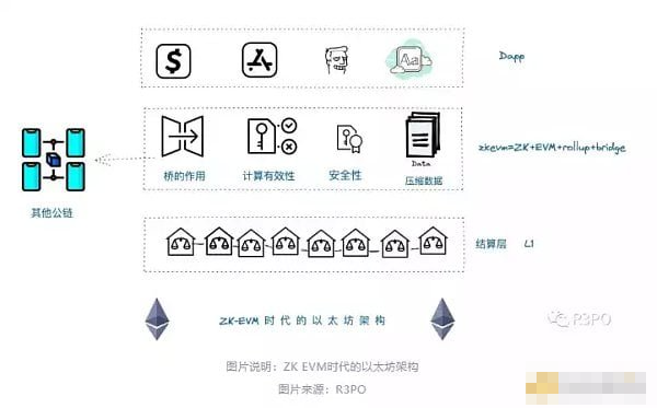 在既有认知中,Dapp 要么运行在公链上,要么运行在 L2 网络上。但在 R3PO 看来,未来 ZK EVM 会直接承载应用层。
