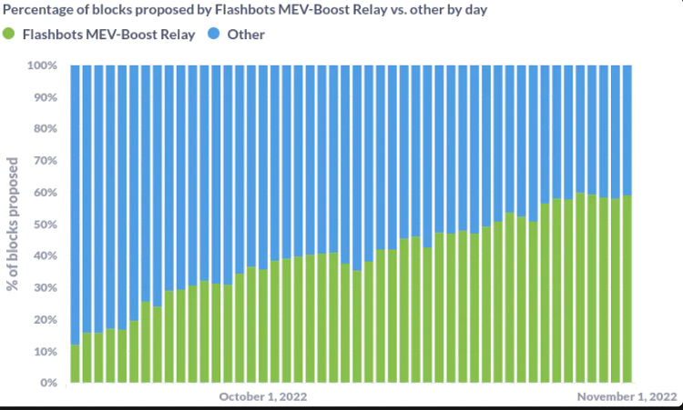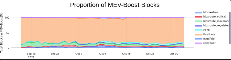 这里的意图不同,但结果相似:Flashbots 目前拥有超过 80% 的网络主导地位,并且正在定价竞争。