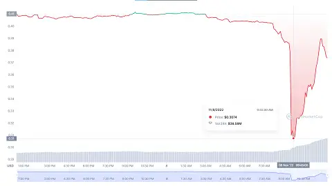 2021 年 11 月 2 日,BitDAO 与 Alameda 交易所了 1 亿个 BIT 代币,以换取 3,362,315 个 FTT 代币,并公开承诺持有对方代币三年,因此至 2024 年 11 月 2 日。 BitDAO 社区迅速对 2022 年 11 月 8 日 BIT 价格的突然下跌做出反应,怀疑 Alameda 抛售 BIT 代币并违反了三年相互禁售的公开承诺。