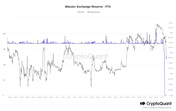 由于 FTX银行挤兑耗尽 BTC 储备 比特币价格触及两周低点