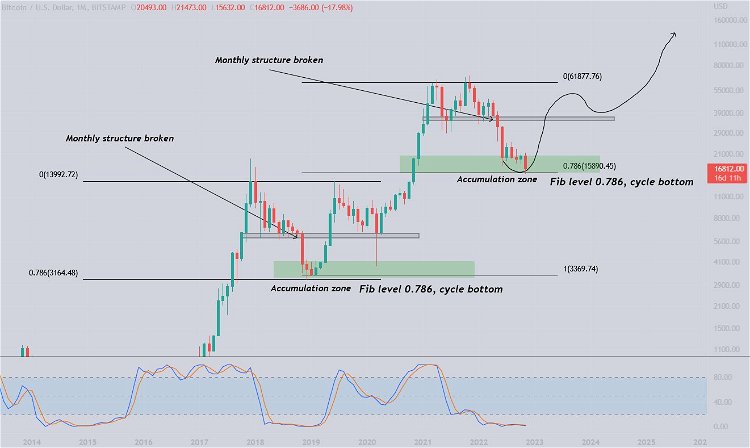 “这些是每周时间框架上显示的 BTC 每月水平,”他在重要焦点水平K线走势图旁边发推文。