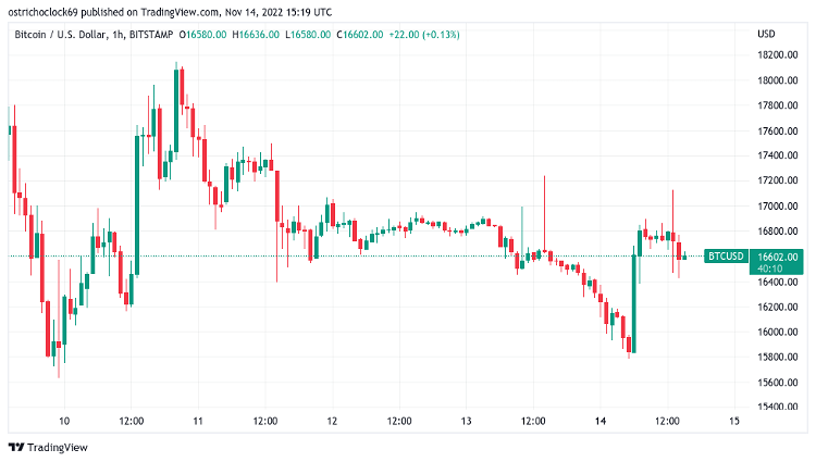 比特币(BTC)在 11 月 14 日华尔街开盘时回升至 16,500 美元,因为多头试图突破但未能走高。