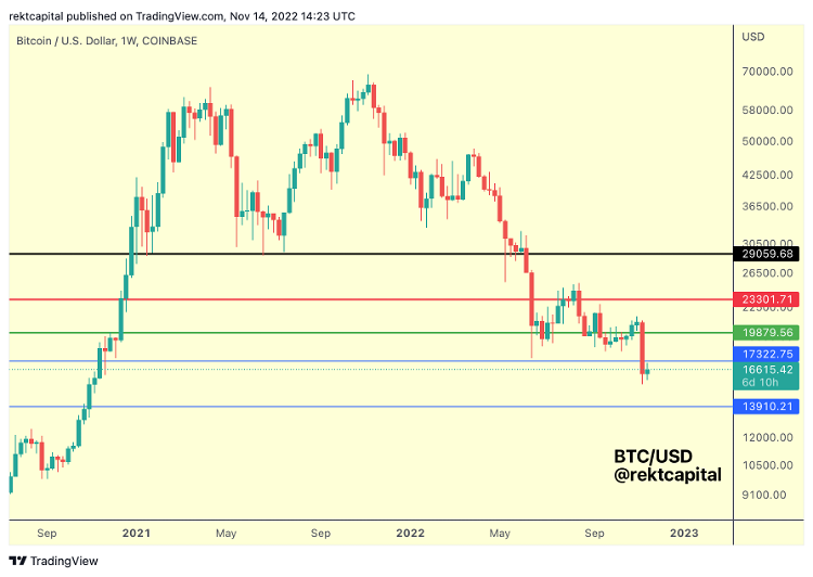 与此同时,交易员和分析师 Rekt Capital 警告称,由于每周收盘价是比特币两年来的最低点,支撑阻力正在发生反转。