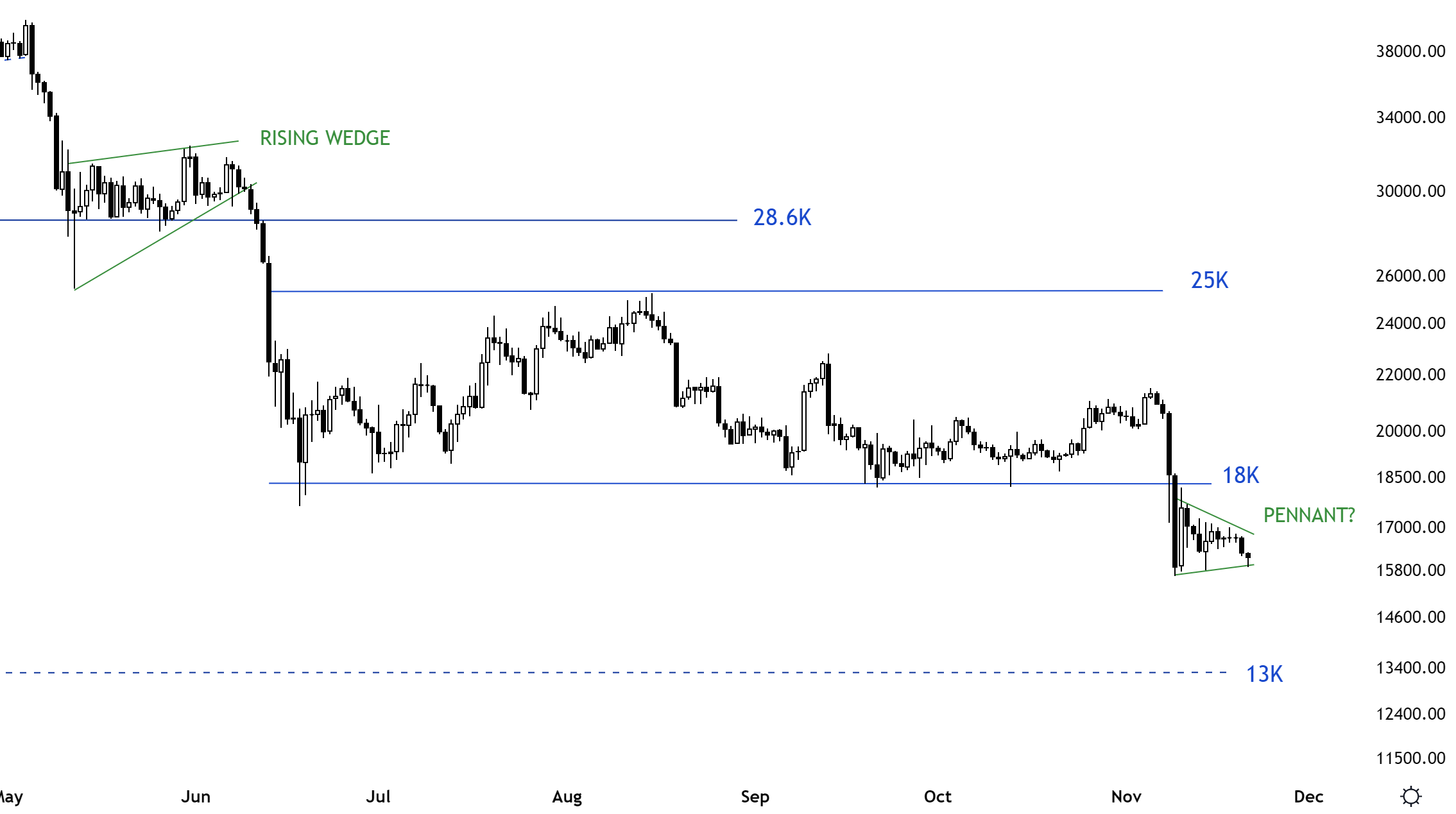 BTC/USD 注释K线走势图。 资料来源:小胡子/推特